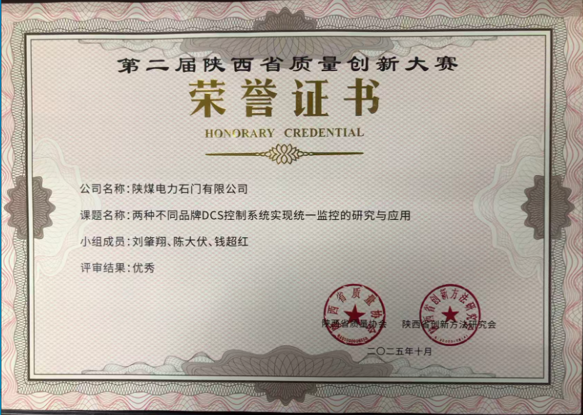 近日,在第二屆陜西省質(zhì)量創(chuàng)新大賽中,陜煤電力石門有限公司申報(bào)《兩種不同品牌DCS控制系統(tǒng)實(shí)現(xiàn)統(tǒng)一監(jiān)控的研究與應(yīng)用》榮獲優(yōu)秀獎?!?..